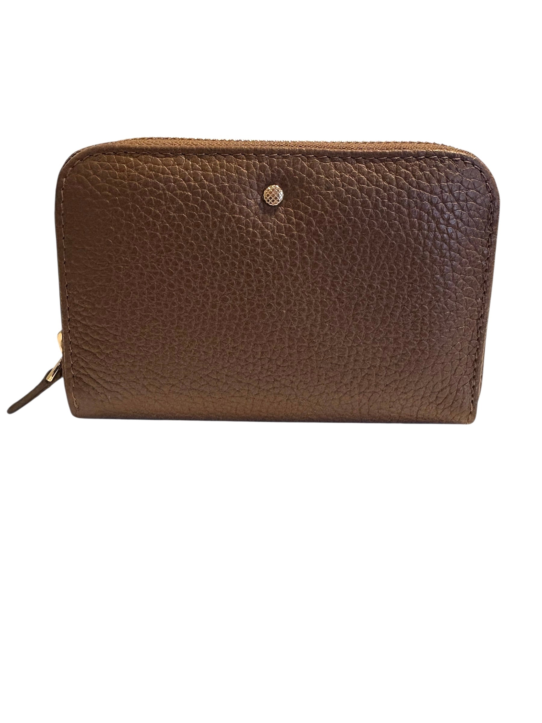 Pratico portafoglio medio donna a soffietto con chiusura a zip, perfetto compagno quotidiano. Realizzato in morbida e resistente pelle bottalata, in una versatile ed essenziale tonalità mud , è caratterizzato da una borchietta zigrinata decorativa. Compatto ma capiente, permette un'organizzazione ottimale per carte, banconote, monete e documenti, per portare con sé l'indispensabile.